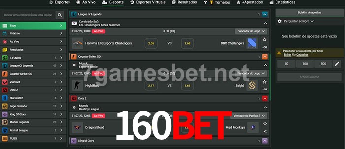 O 160bet oferece uma grande seleção de opções de apostas em e-sports com probabilidades competitivas